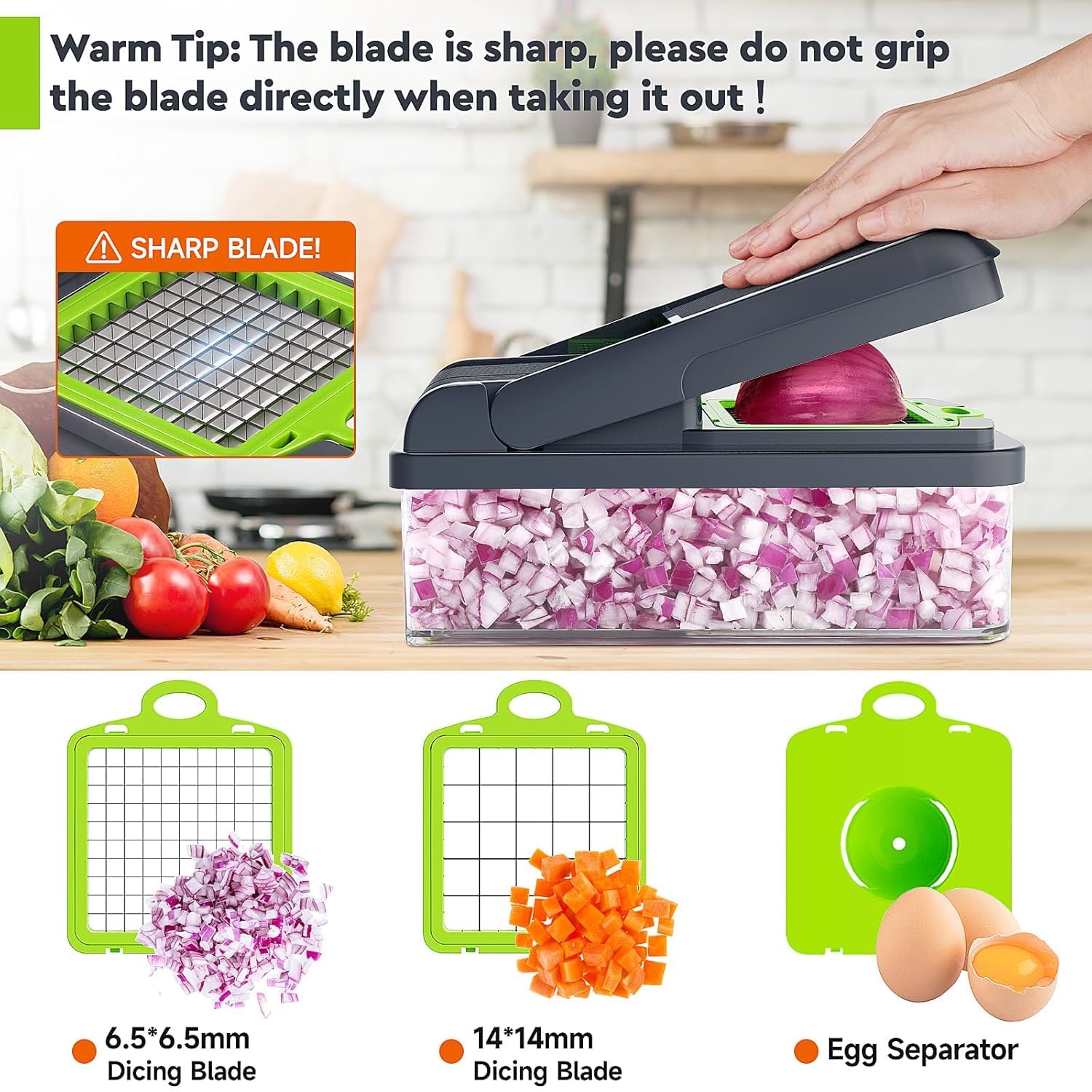 12-in-1 Vegetable Chopper, 7 Blade Veggie Chopper, Practical Food Chopper with Container, Cheese Grater, Home Essentials & Kitchen Gadgets